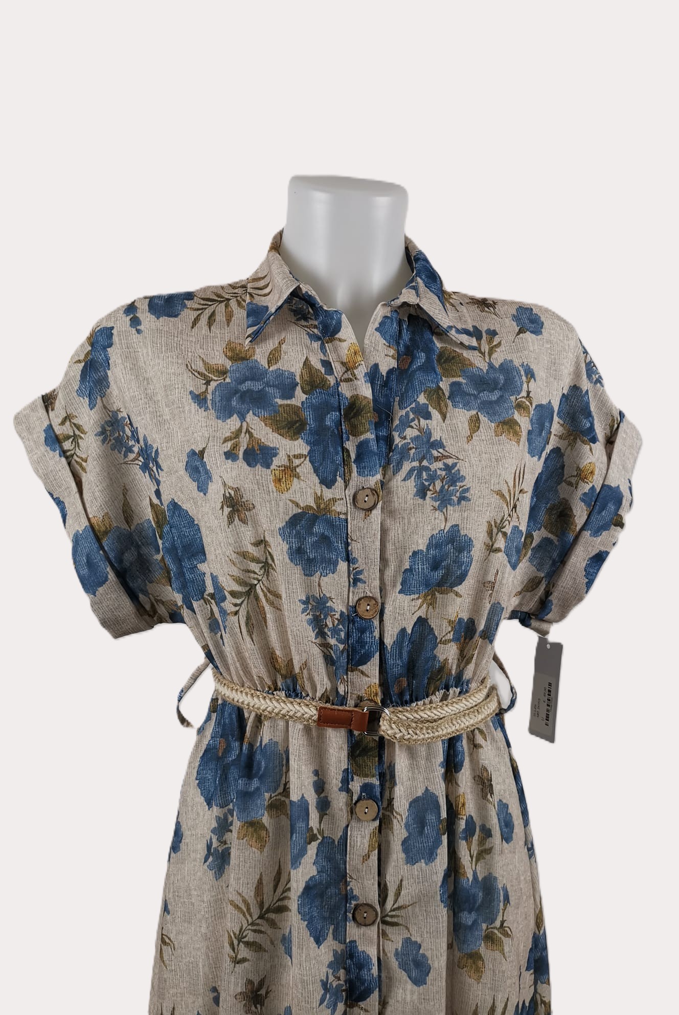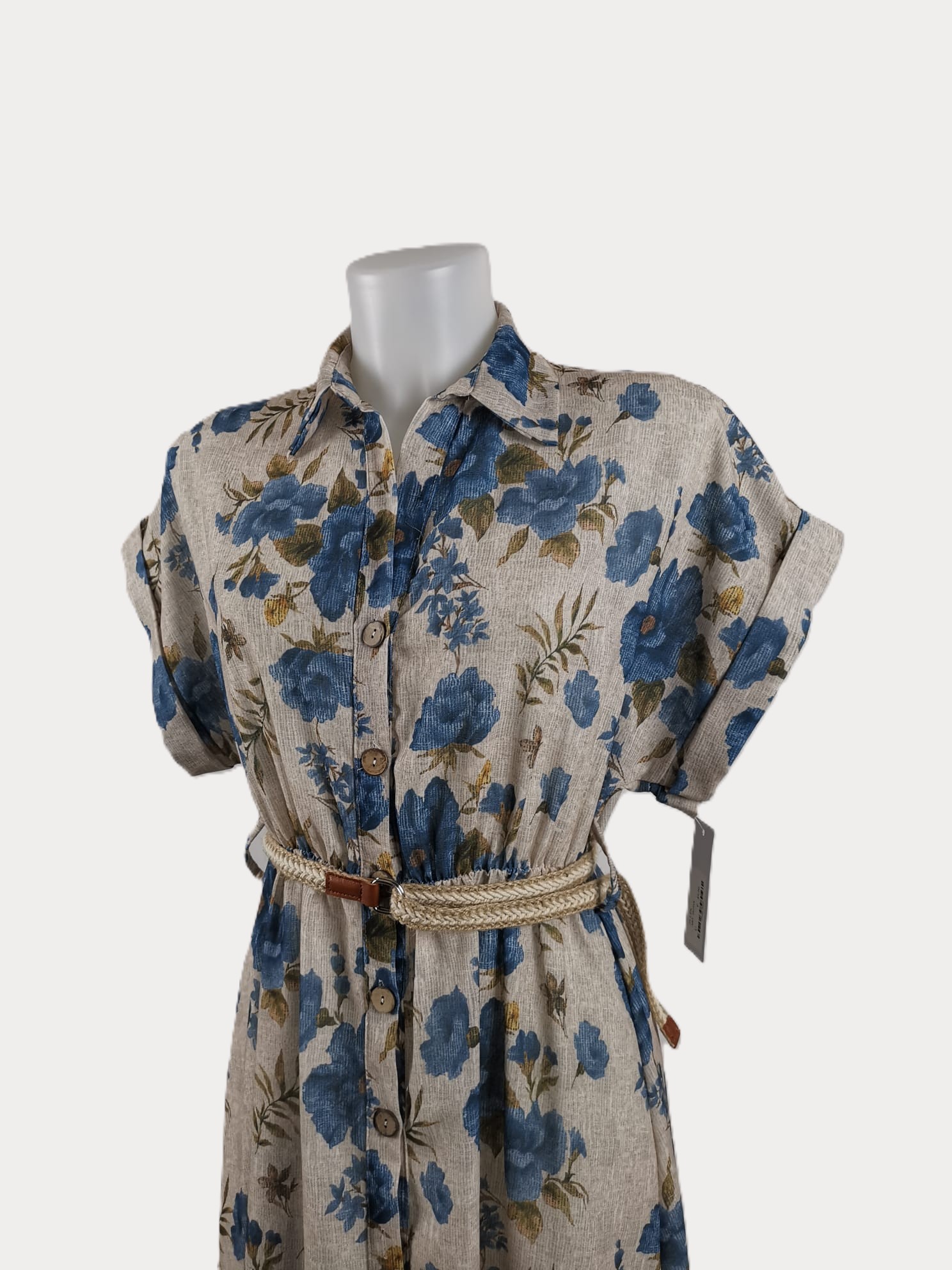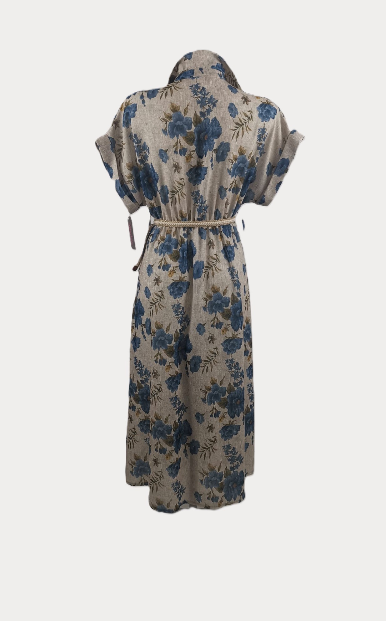Realizzato in un tessuto traspirante che accarezza la pelle, è arricchito da eleganti bottoni frontali e una cintura coordinata che valorizza la silhouette con naturalezza.