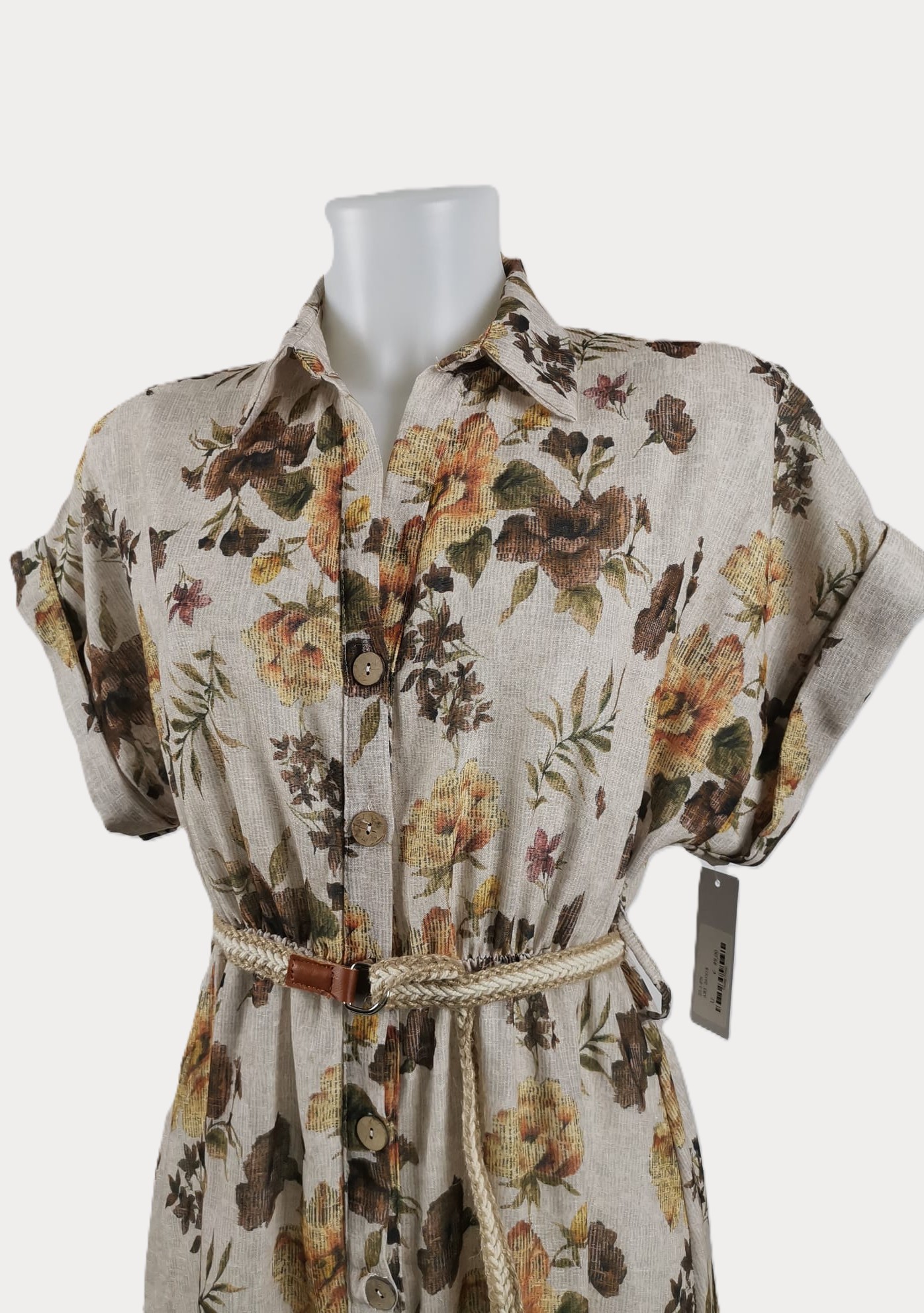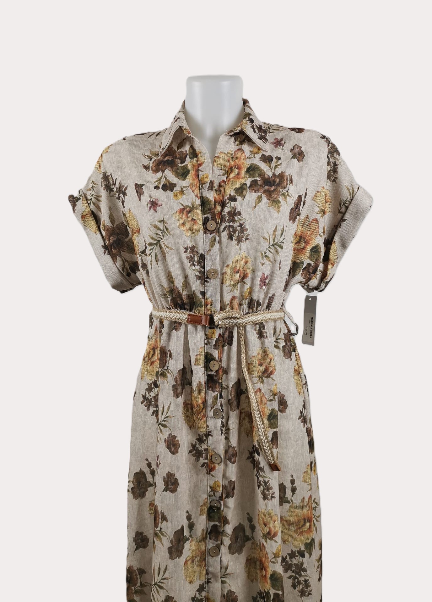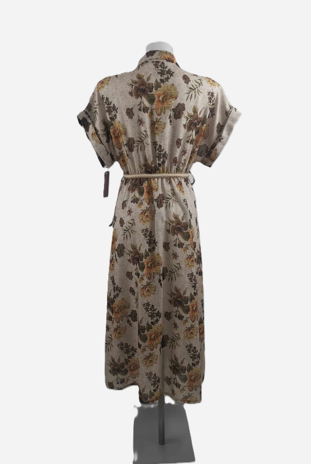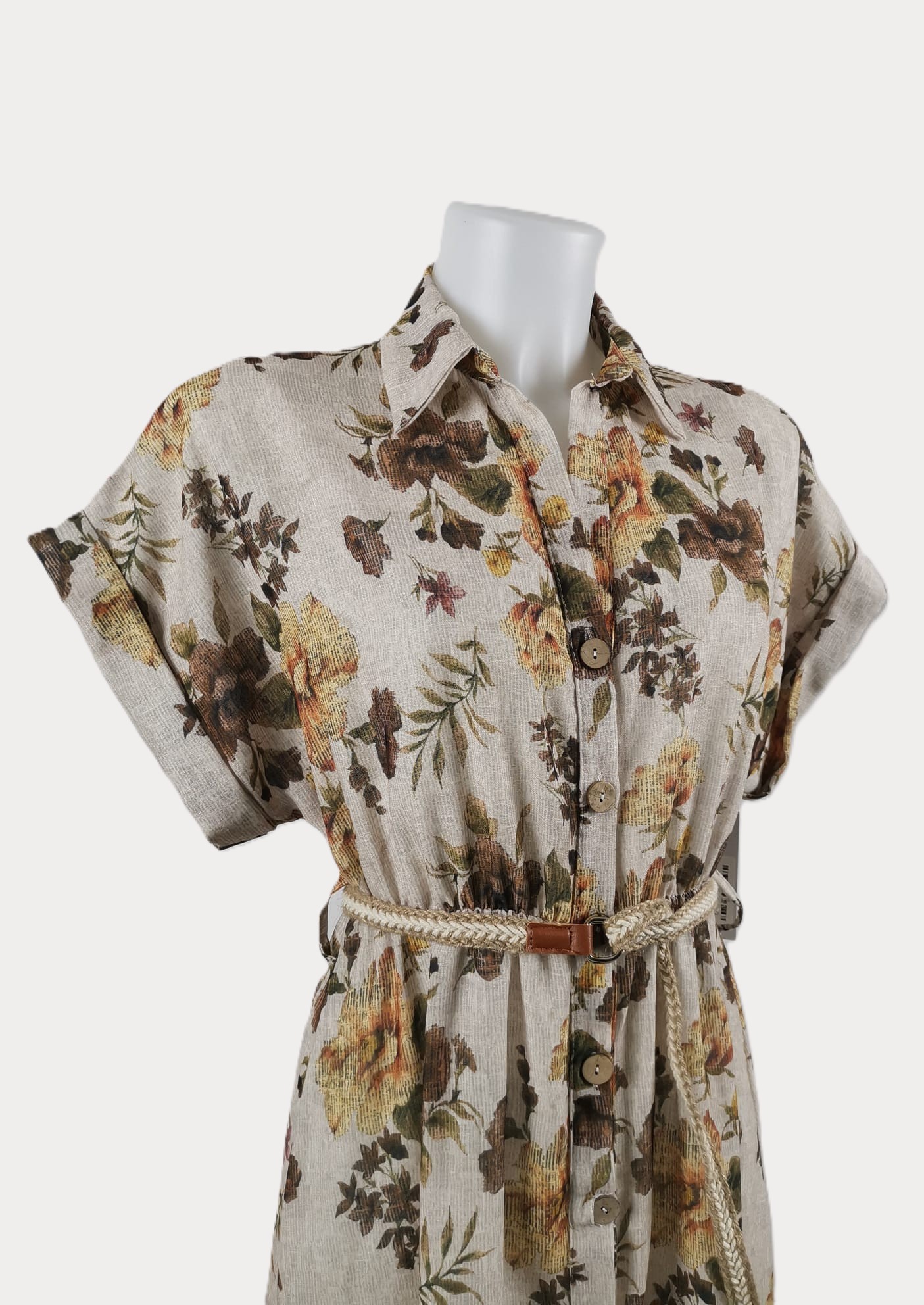 Realizzato in un tessuto traspirante che accarezza la pelle, è arricchito da eleganti bottoni frontali e una cintura coordinata che valorizza la silhouette con naturalezza.